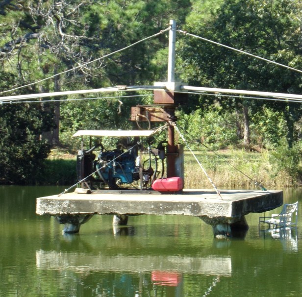 This was described to us as a ” fine example of red neck engineering”. The arms of this thing are from a pony ride for kids; the kind that the ponies are hooked to and walk around in circles. The motor for this is a tractor engine. The way we understood it is that the kids are on wakeboards and hold on to the handles of this and spin around. We were told the kids love it and the line to get on it is always long.