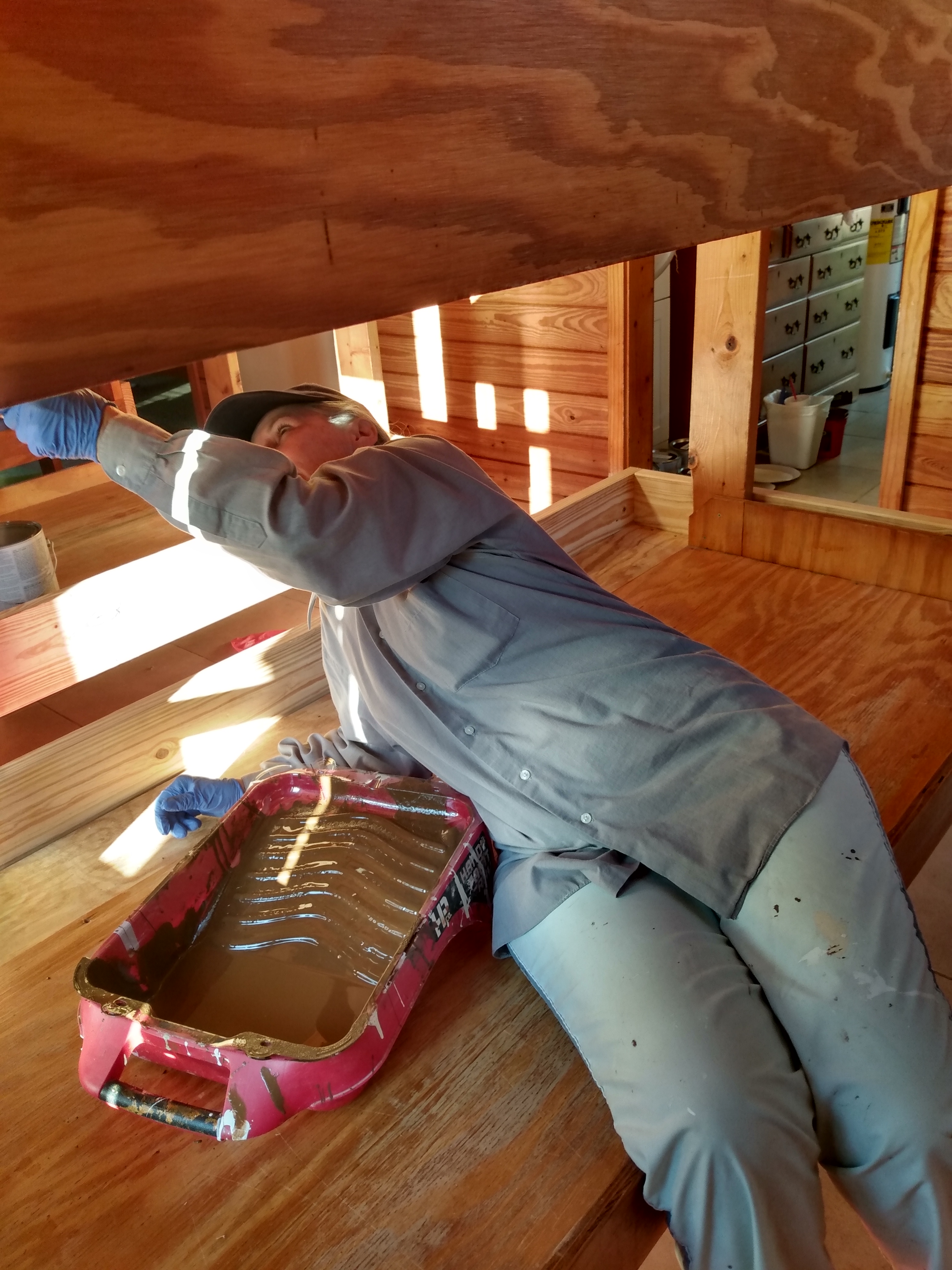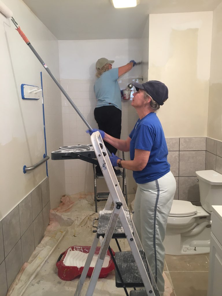 The men have been reconfiguring the beds and the women have been painting them.