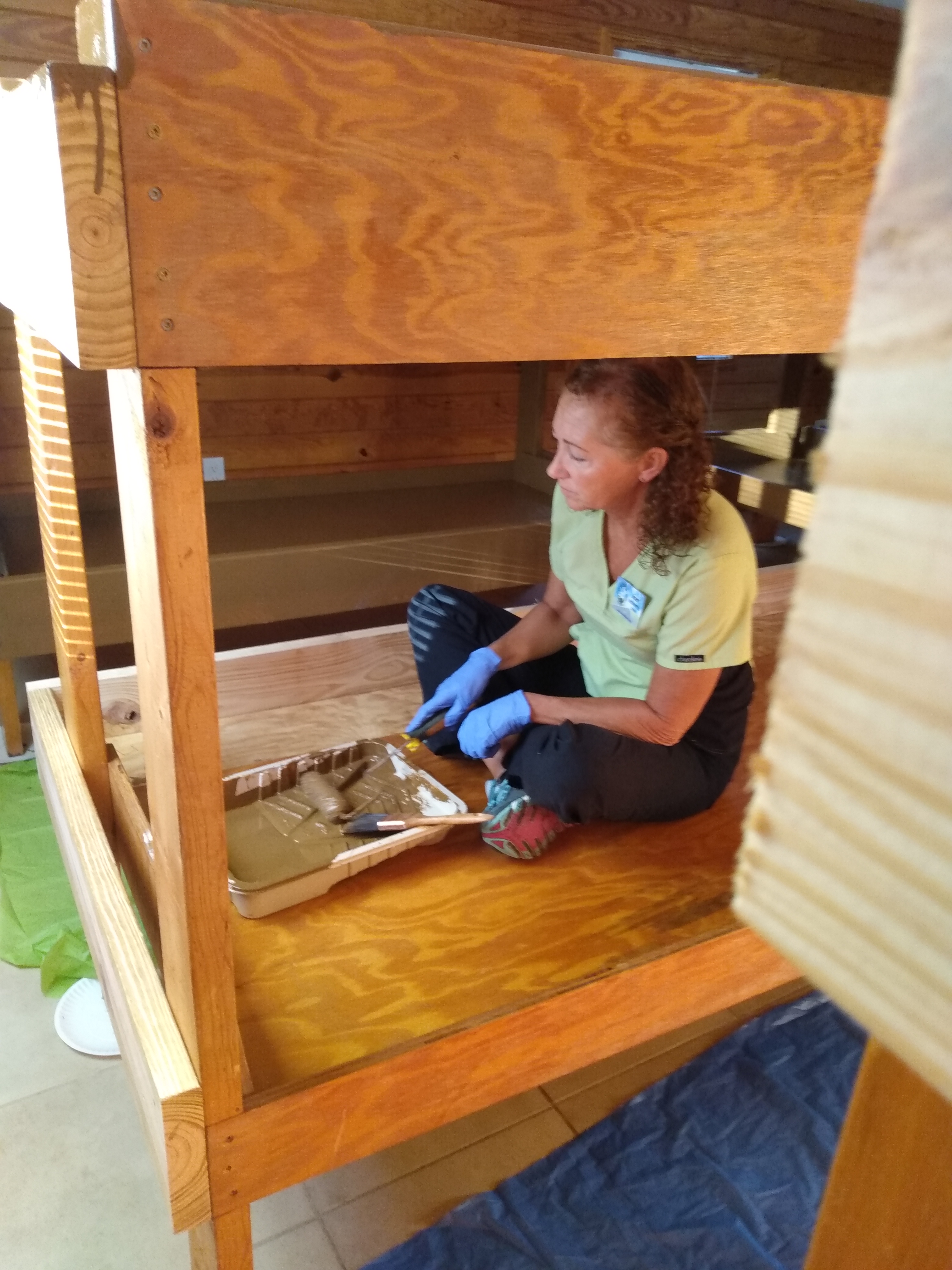The beds are all being modified to be 38 inches wide and to have standard twin bed mattresses. 185 bunk beds need to be modified. The wood is being cut in the maintenance shop, but the beds are being disassembled, reassembled, and painted in the cabins.