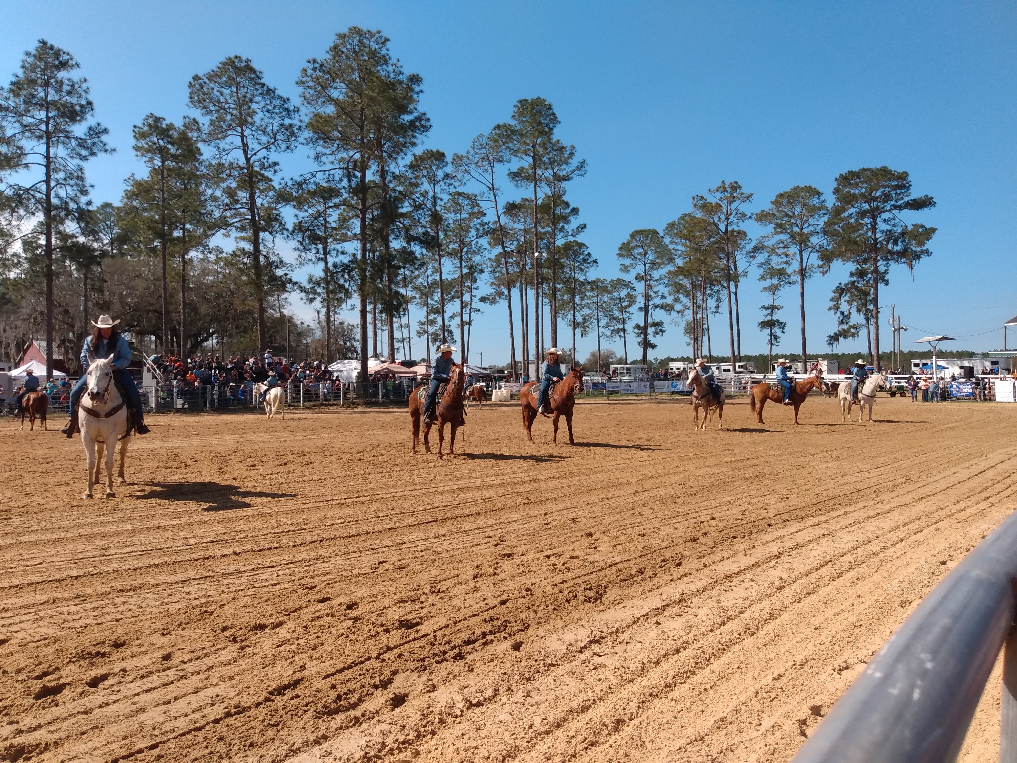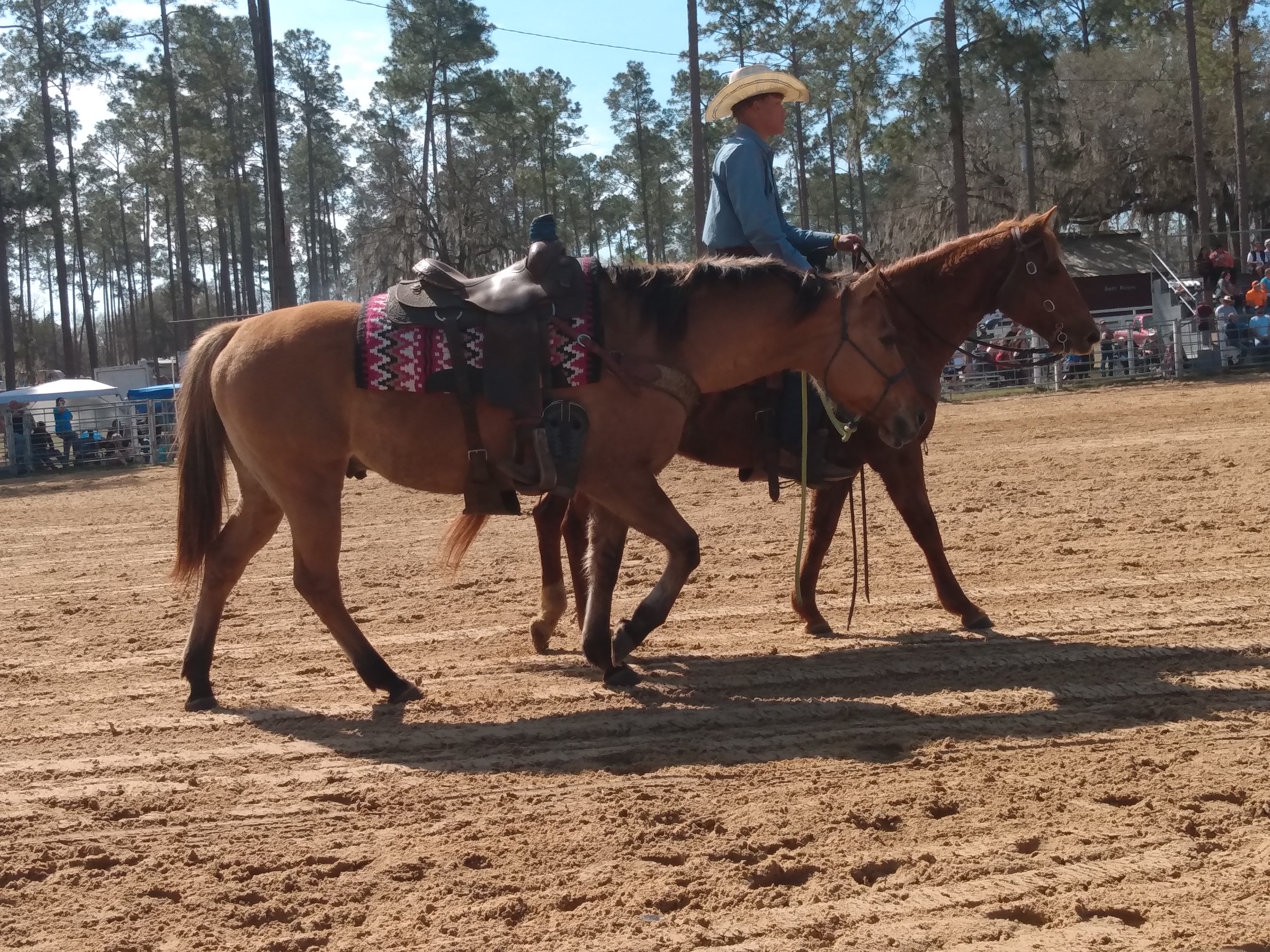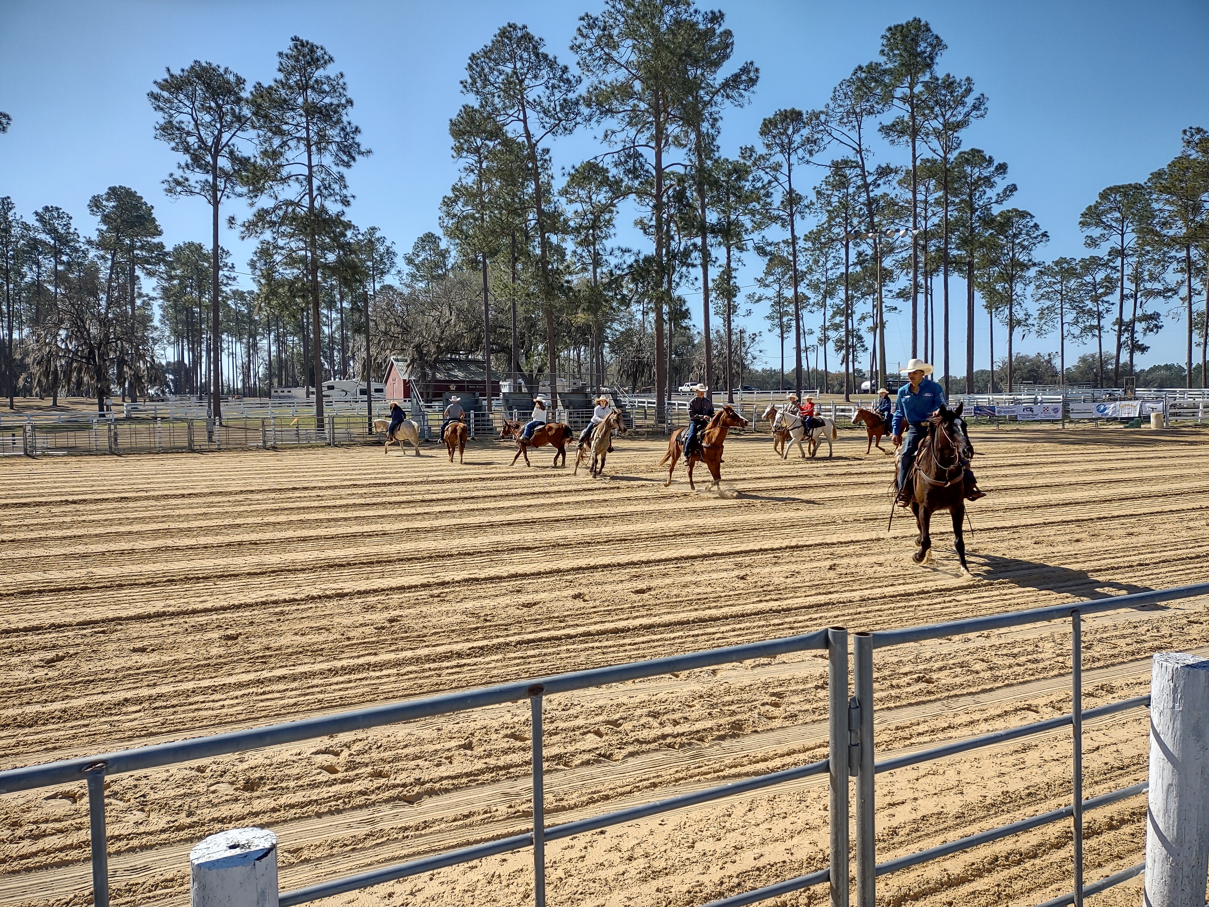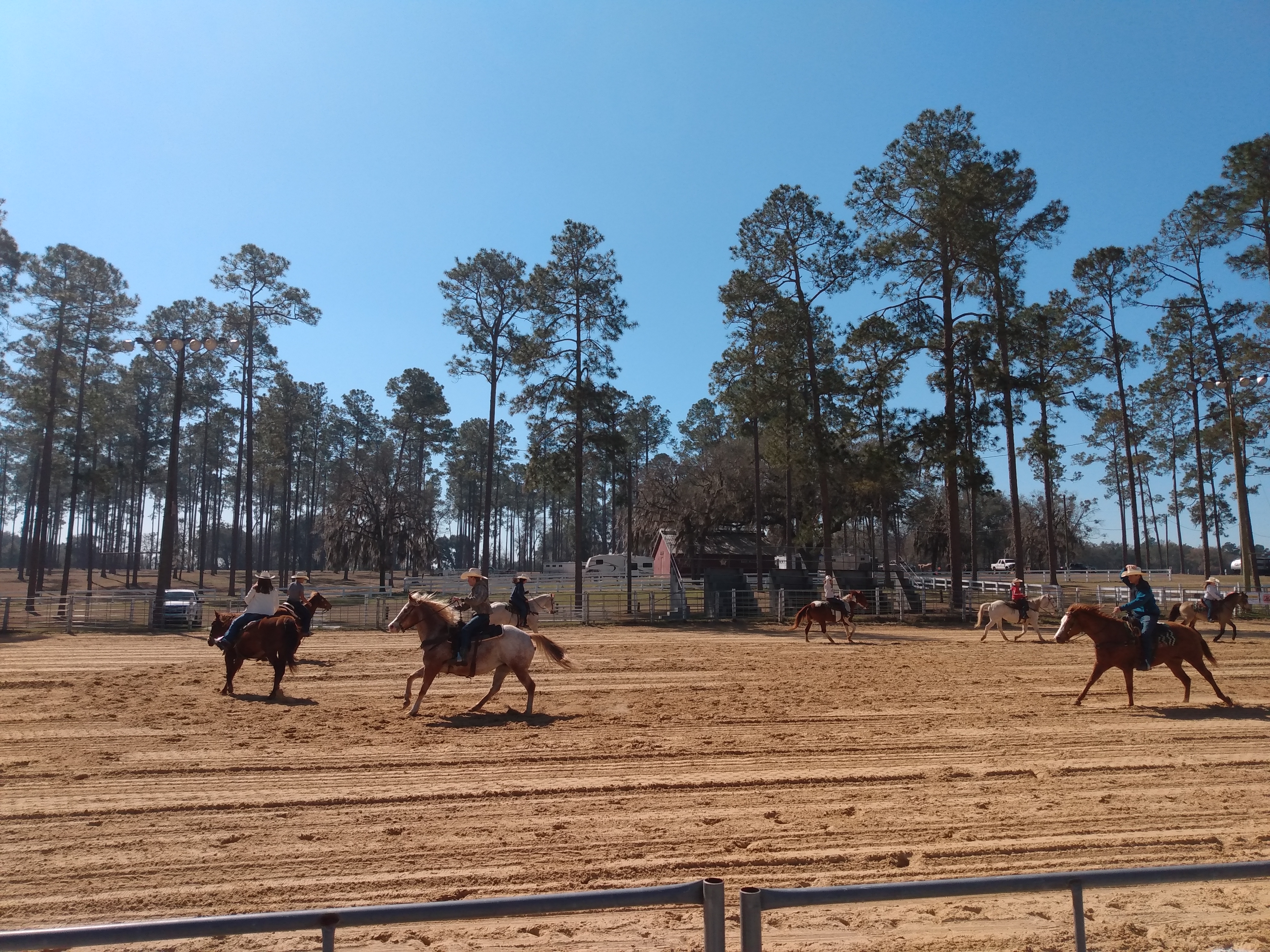 Riding clubs from around the area plan and participate in several arena games. They have barrel racing, the game they call pole bending, where they weave in and out of the poles and the ever-popular “buddy pick up”. For the “buddy pick up”, the rider has to go to the end of the arena as fast as they can go and pick up the “buddy” at the end, get them on the horse, and back to the start in a timed race. The only requirement is that they have to get the rider on the horse and back to the start. Many times, the rider is barely on the horse but as long as they cross the line before the “buddy” falls off, it counts.