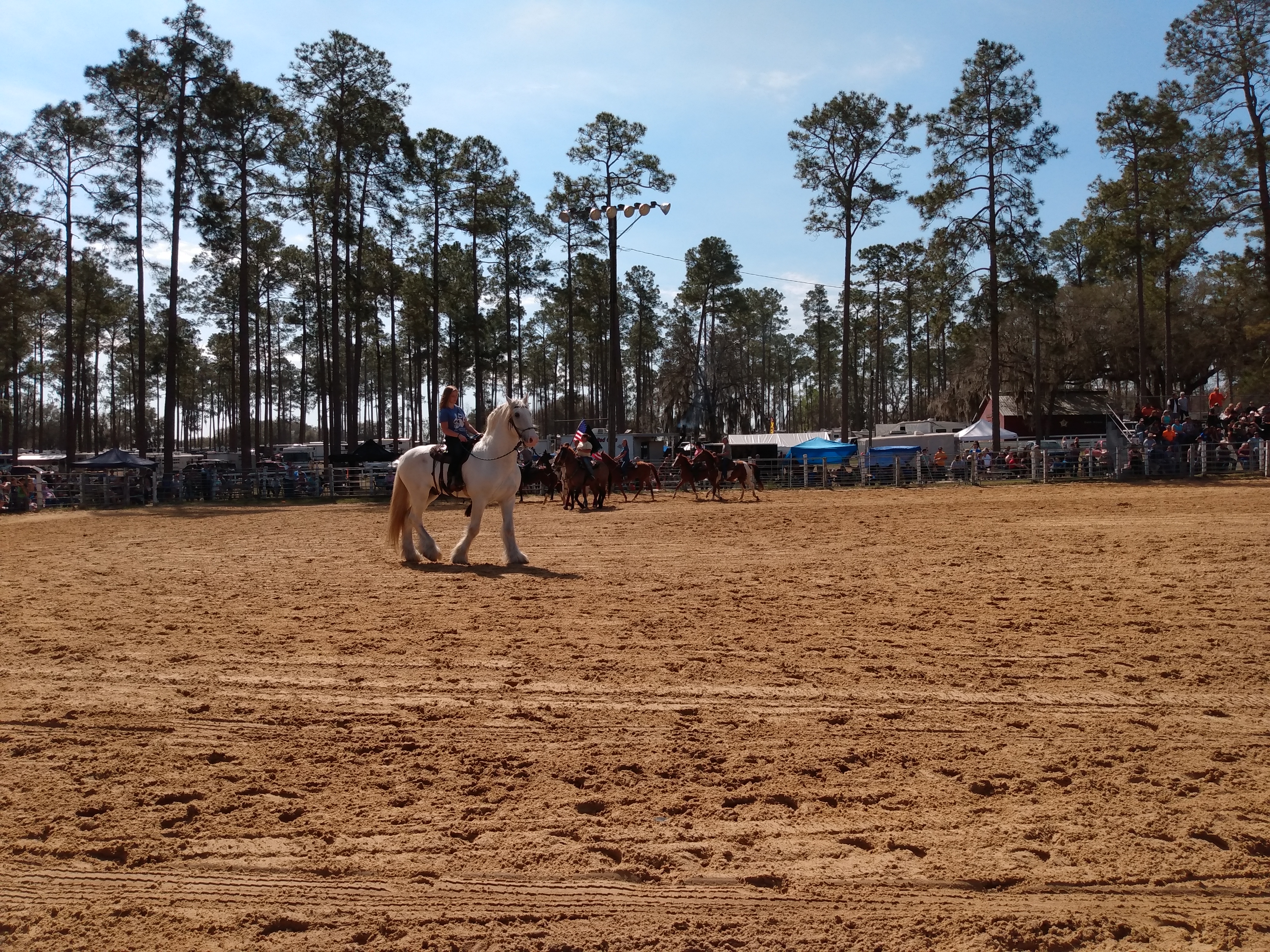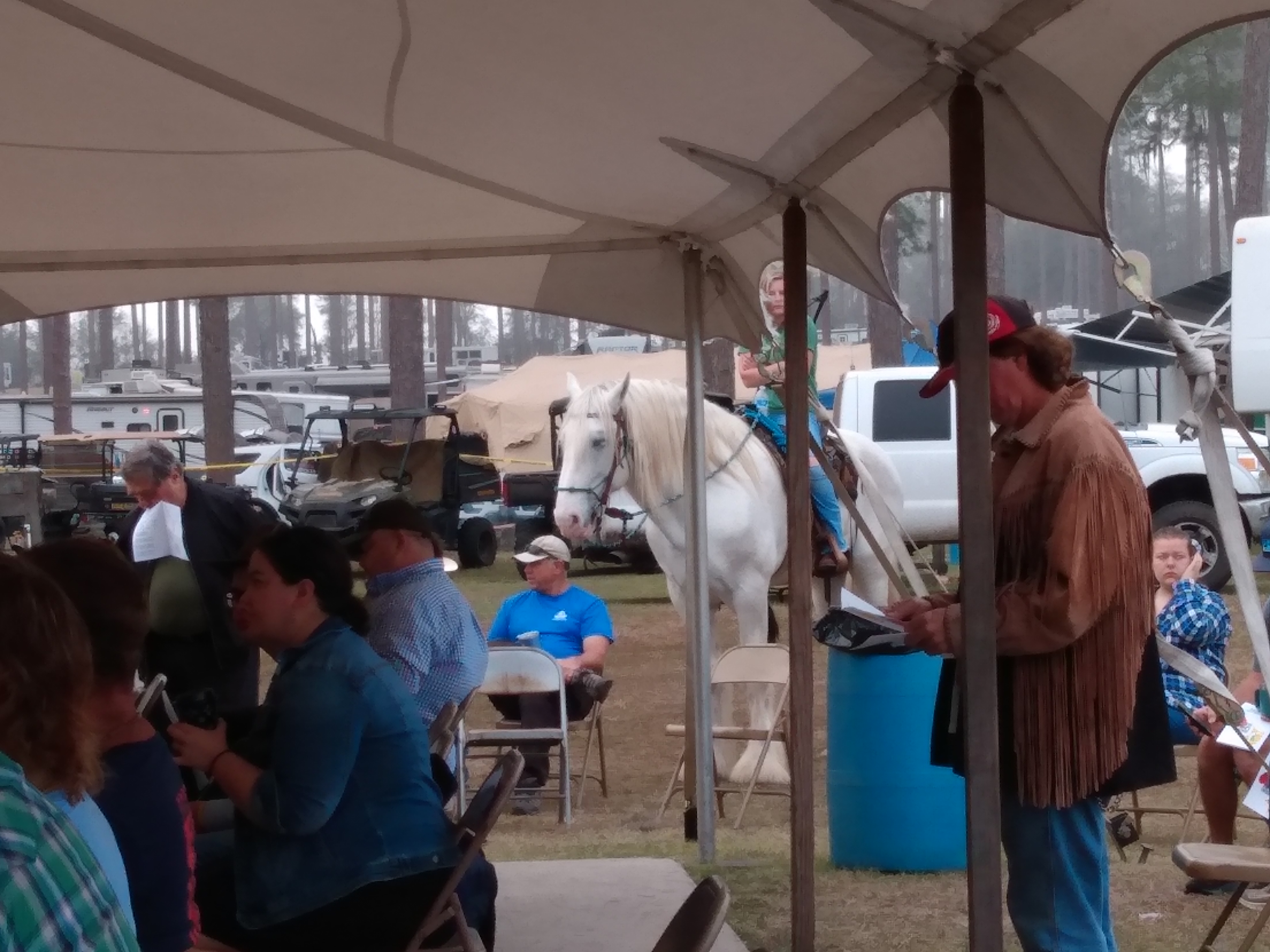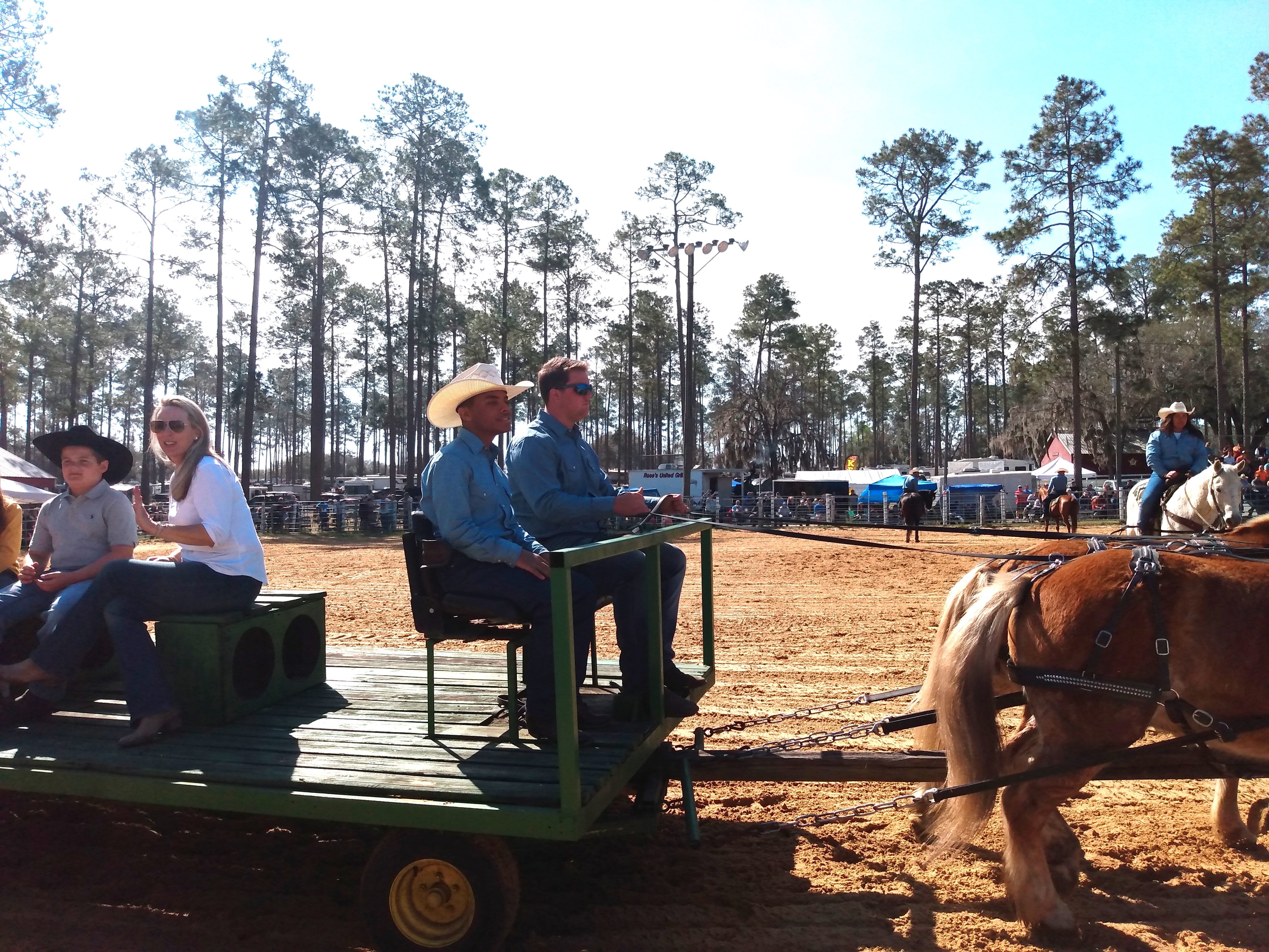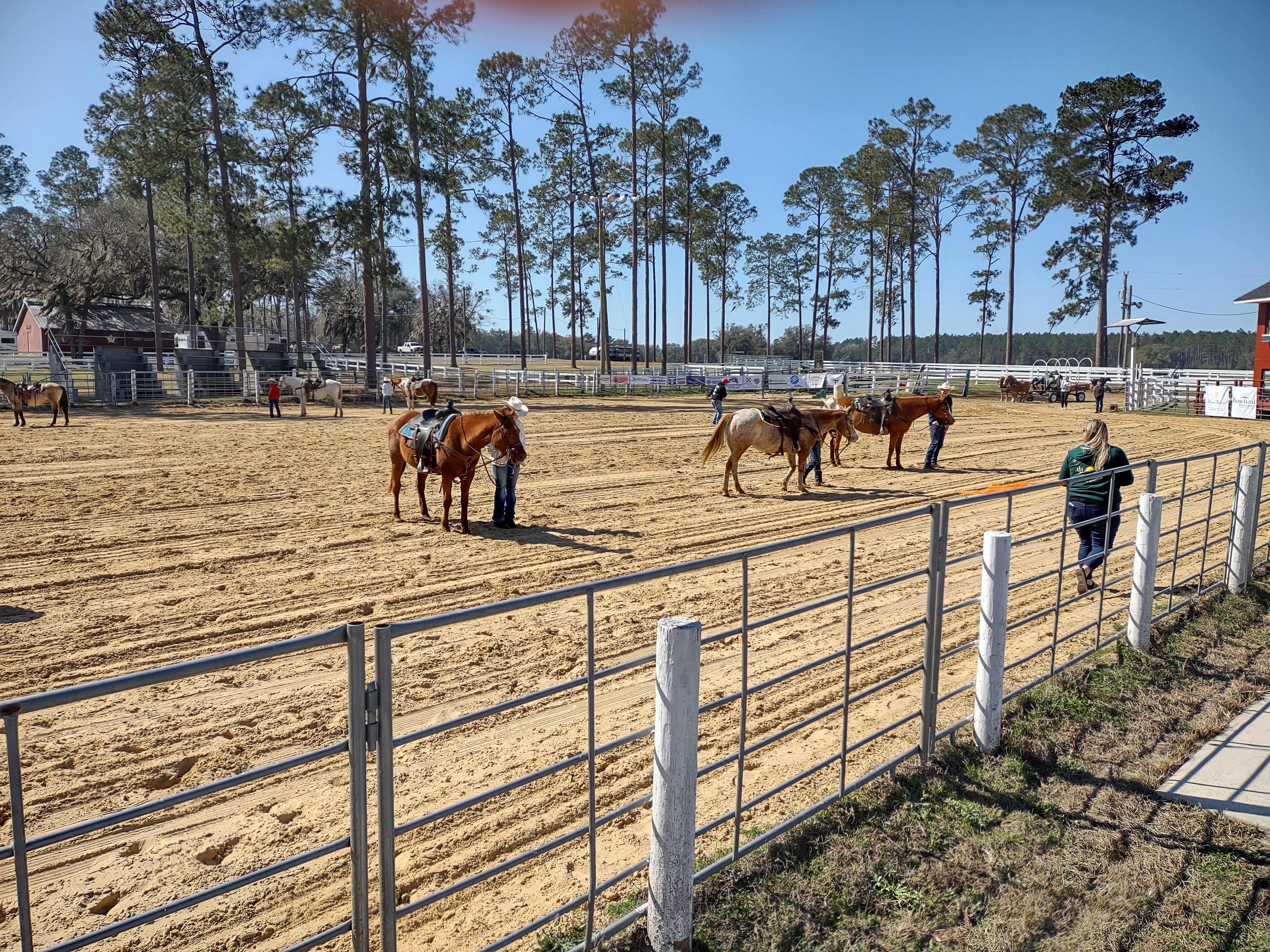 Riding clubs from around the area plan and participate in several arena games. They have barrel racing, the game they call pole bending, where they weave in and out of the poles and the ever-popular “buddy pick up”. For the “buddy pick up”, the rider has to go to the end of the arena as fast as they can go and pick up the “buddy” at the end, get them on the horse, and back to the start in a timed race. The only requirement is that they have to get the rider on the horse and back to the start. Many times, the rider is barely on the horse but as long as they cross the line before the “buddy” falls off, it counts.