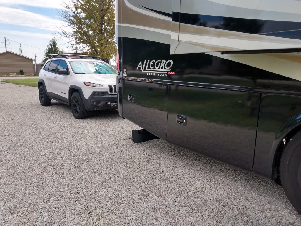 On our way to Colorado Springs las month, it was a challenge finding overnight stays for our 38 foot motorhome pulling our jeep. When traveling through an area pulling a “toad”and staying only overnight we always look for pull-through sites so we don’t have to unhook the “toad”. In RV lingo, “toad” is the vehicle you are towing behind your RV.